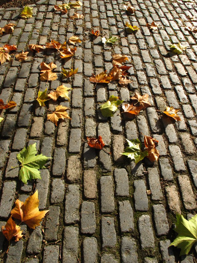Leaves on cobbles